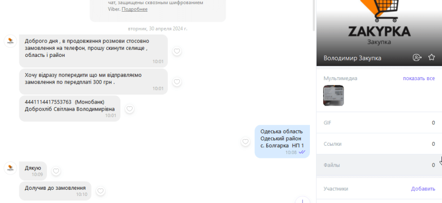 Интернет магазин zakypka.shop ЛОХОТРОН. Не рекомендую покупать на сайте zakypka.shop 30,04,2024 заказал Xiaomi Redmi Note 11 Pro 8/128GB Star Blue, попросили 300 грн переслать на доставку. Прислали Xiaomi Redmi Note 11 Pro 6/64GB, коробка была уже вскрыта и как по мне уже не однократно так ездит по заказам. Оригинальной защитной обвёртки не было. Стали уговаривать его забрать с дополнительной скидкой в 800 грн. Я отказался. Обещали вернуть предоплату, прошло три недели никаких действий нет. Перестали брать трубку. Ниже реквизиты карты на которую перечислял предоплату. Одним словом обман.
